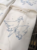 Blue line work ducks with twinkle stars! Inspired by vintage kitchenware. Screen printed by hand by me! Add some whimsy to your kitchen