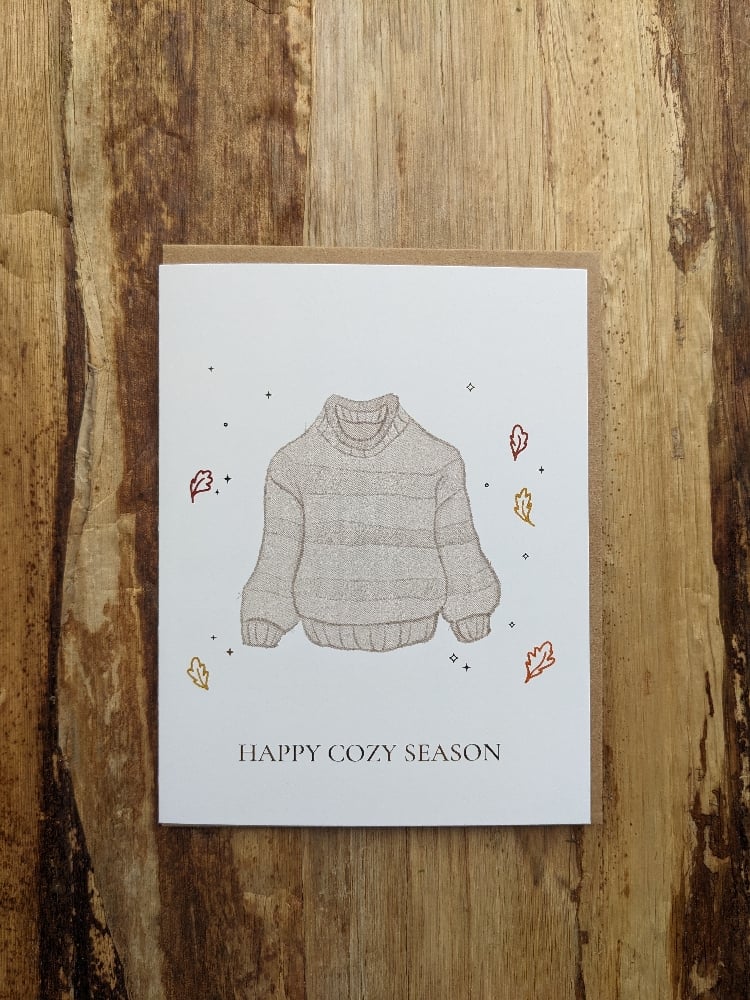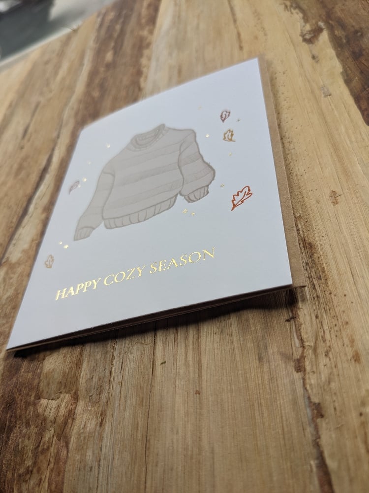Illustrated gold foil card. Send this to your loved ones during sweater season!